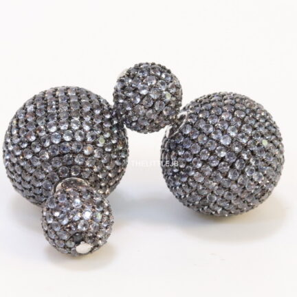 Black rhodium plated bomber studs with white cubic zirconia stones