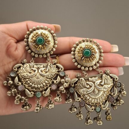 Delicate Peacock inspired danglers in Platinum plating