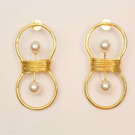 Golden Pearl Orbit Hoops