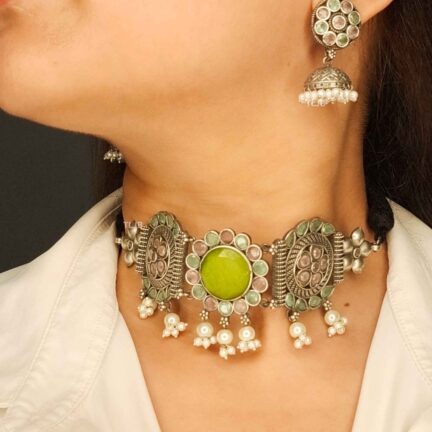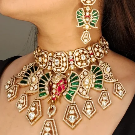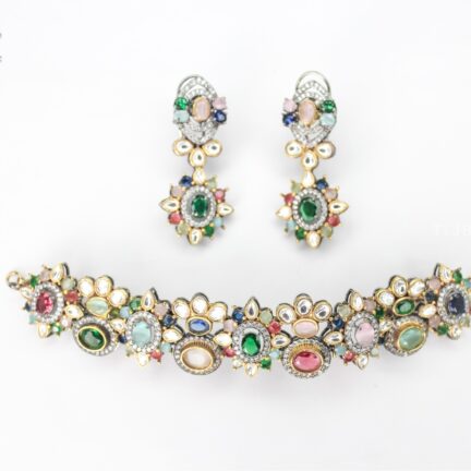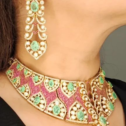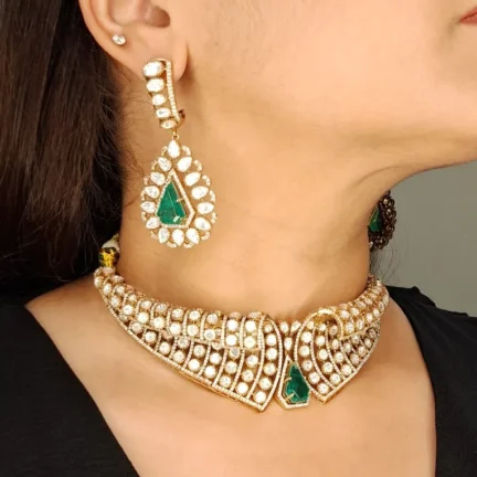 Moissanite Polki Fusion Choker Set with Columbian Emerald