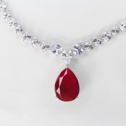 Platinum link chain necklace with Large 35 mm Ruby Heart shaped cz pendant