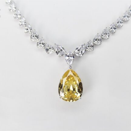 Korean Yellow Topaz Drop Necklace set with finest CZ
