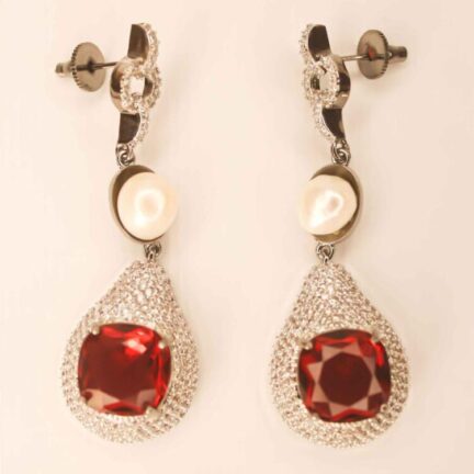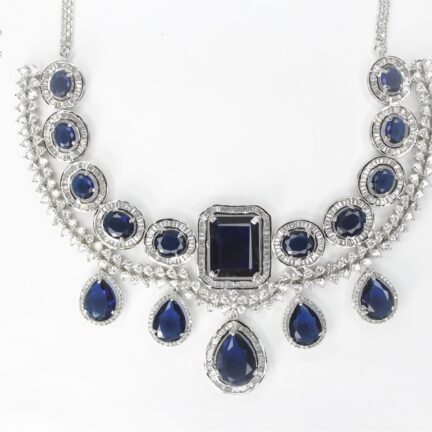 Designer Cz Korean Spring Collar Necklace set in rubies