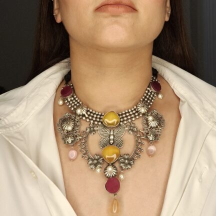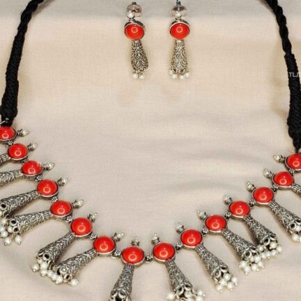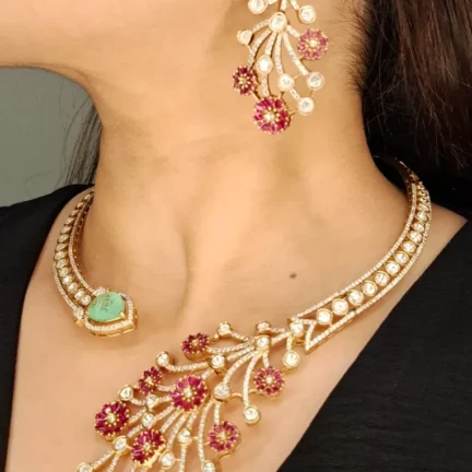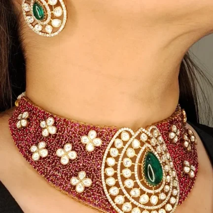 Designer Fusion Collar Set with Cut Rubies and Emerald Stones