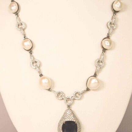 Moissanite Polki Fusion Kundan Necklace with Pearl Drops