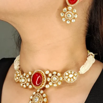 Moissanite Polki Fusion Kundan Choker Set with Ruby Stones