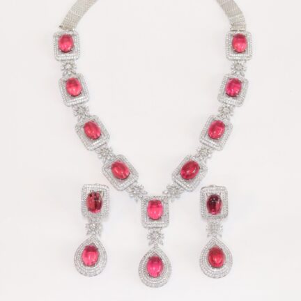 Cz and ruby stone long necklace set