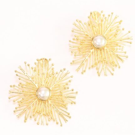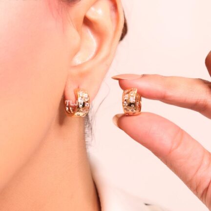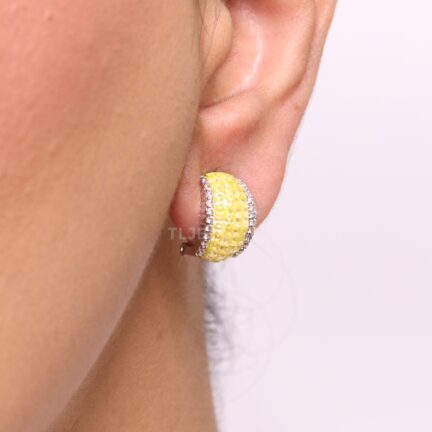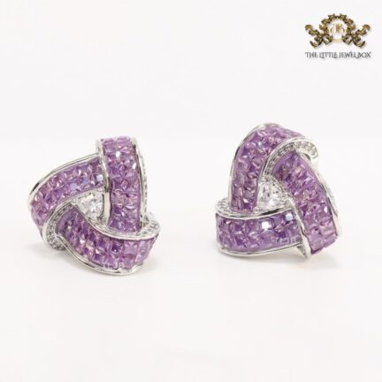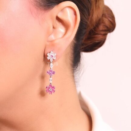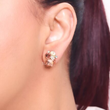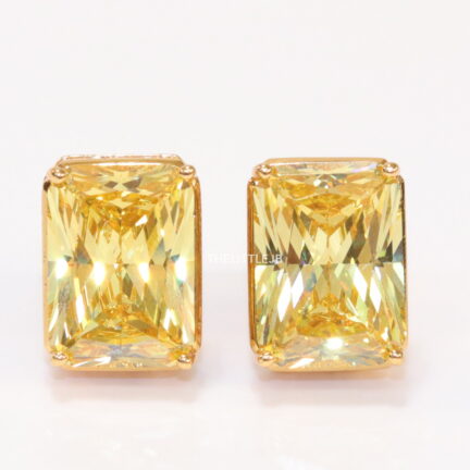 Gold plated studs with rectangular yellow cubic zirconia stone and baguette pink cubic zirconia stones on sides