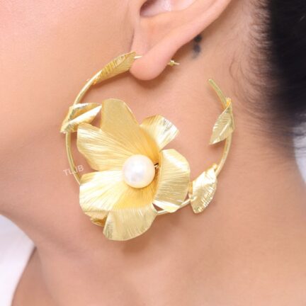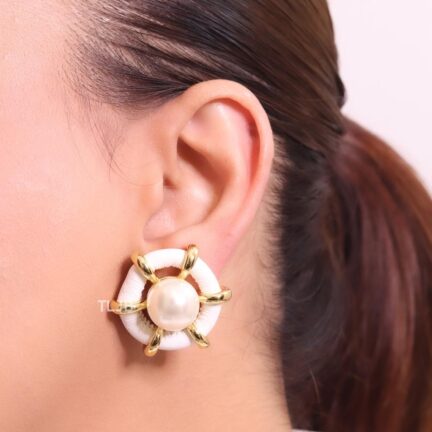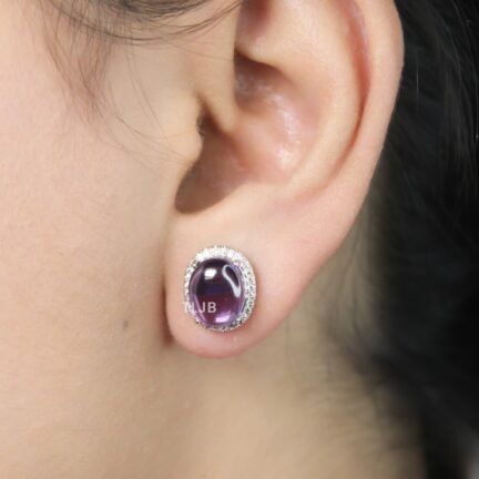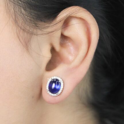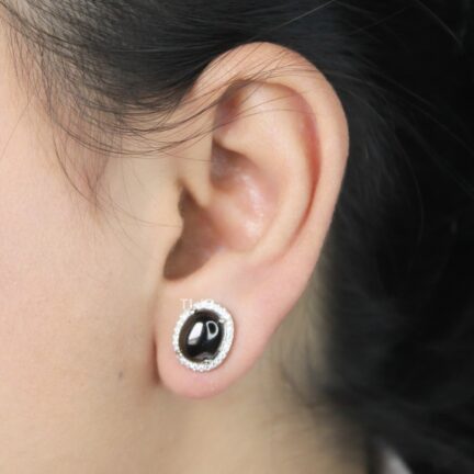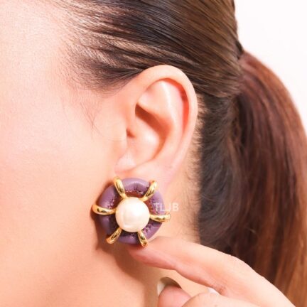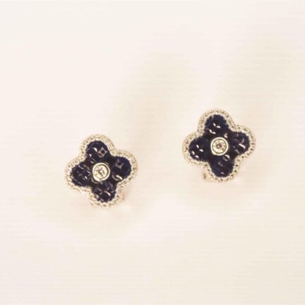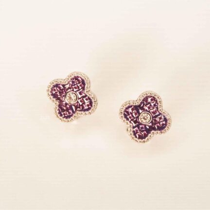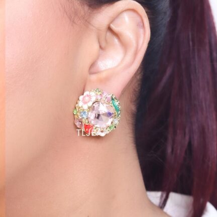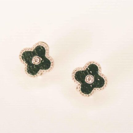 Five Petal Deep Green Stone and CZ Centre flower studs